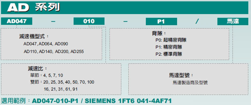AD047,AD064,AD090,AD110,AD140,AD200,AD255,伺服專用減速機