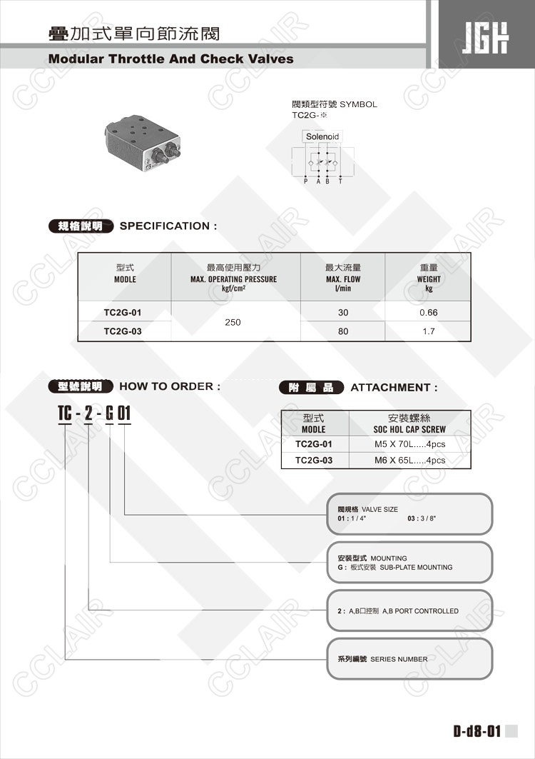 詳細信息 JeouGang臺灣久岡,疊加式單向節(jié)流閥TC-2-G-01,TC-2-G-03