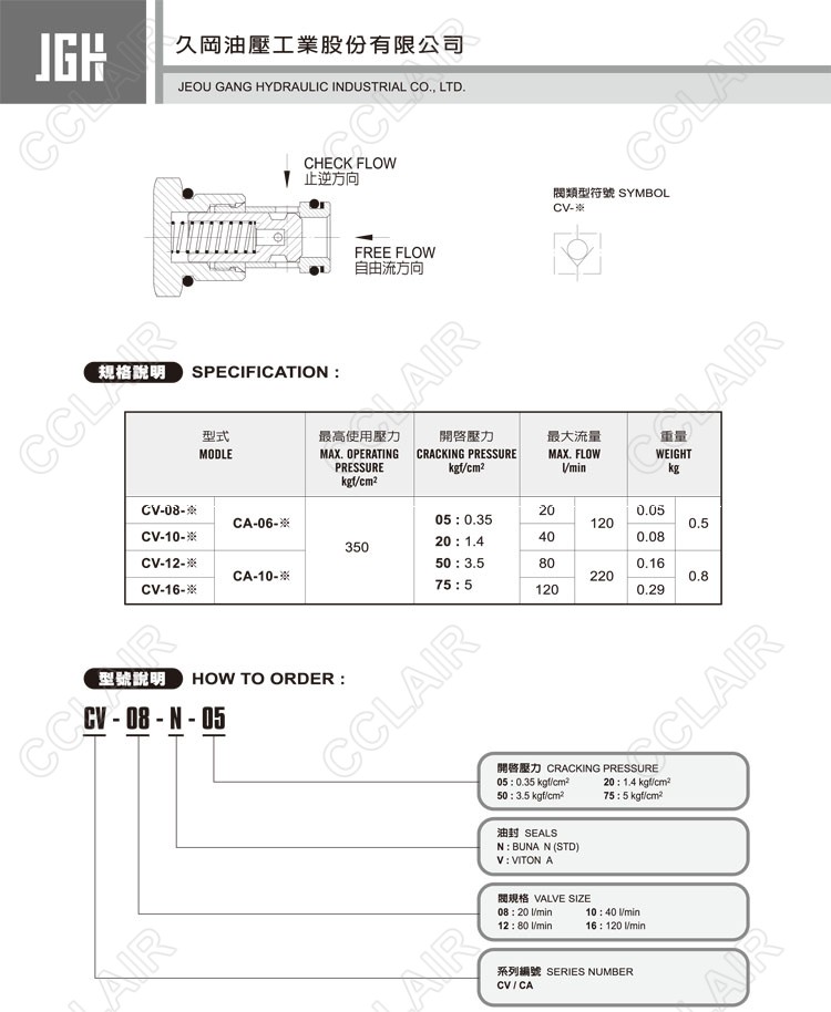 JeouGang臺(tái)灣久岡,止逆閥CV-08-N-05,CV-08-N-20,CV-08-N-50,CV-10-V-20,CV-10-V-50,CV-10-V-75,CV-16-N-05,CV-16-N-20,CV-16-N-50,CA-12-V-20,CA-12-V-50,CA-12-V-75,CA-16-N-05,CA-16-N-20,CA-16-N-50,CA-16-N-75,CA-16-V-20,CA-16-V-50,CA-16-V-75