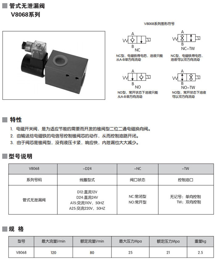 V8068-D24,V8068-D12,V8068-A15,V8068-A25,V8068-D24-NC-TW,V8068-A15-NO,管式無泄漏閥