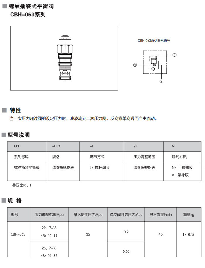 CBH-063-L2RN,CBH-063-L4RN,CBH-063-L2SN,CBH-063-L4SN,CBH-063-L2RV,CBH-063-L4RV,螺紋插裝式平衡閥