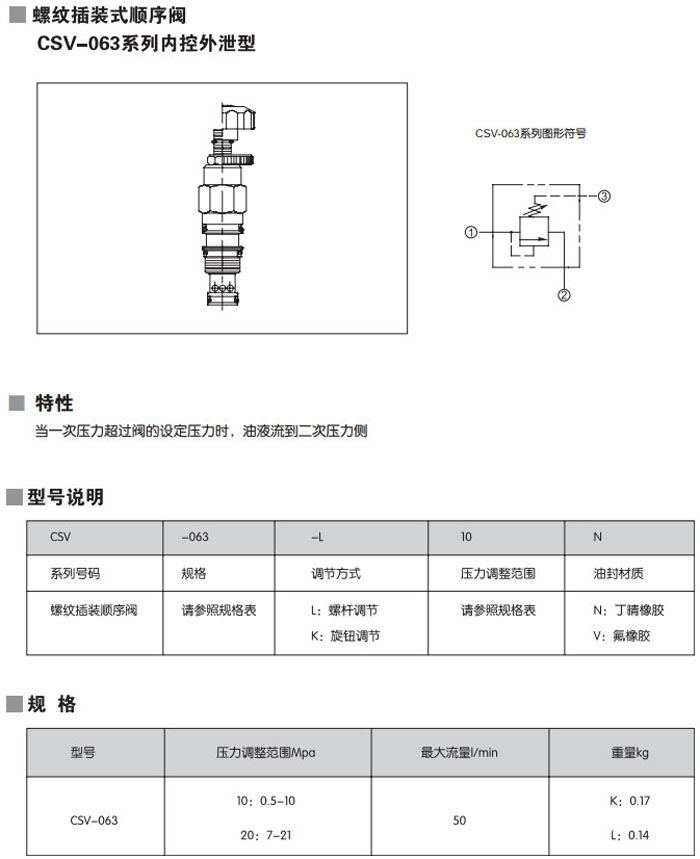 CSV-063-L10N,CSV-063-L20N,CSV-063-K10N,CSV-063-K20N,CSV-063-L10V,CSV-063-L20V,螺紋插裝式順序閥 詳細信息 CSV-063-L10N,CSV-063-L20N,CSV-063-K10N,CSV-063-K20N,CSV-063-L10V,CSV-063-L20V,螺紋插裝式順序閥