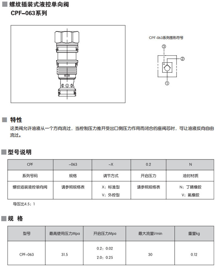 CPF-063-X0.2N,CPF-063-X2.0N,CPF-063-V0.2N,CPF-063-V2.0N,CPF-063-X0.2V,螺紋插裝式液控單向閥 詳細(xì)信息 CPF-063-X0.2N,CPF-063-X2.0N,CPF-063-V0.2N,CPF-063-V2.0N,CPF-063-X0.2V,螺紋插裝式液控單向閥