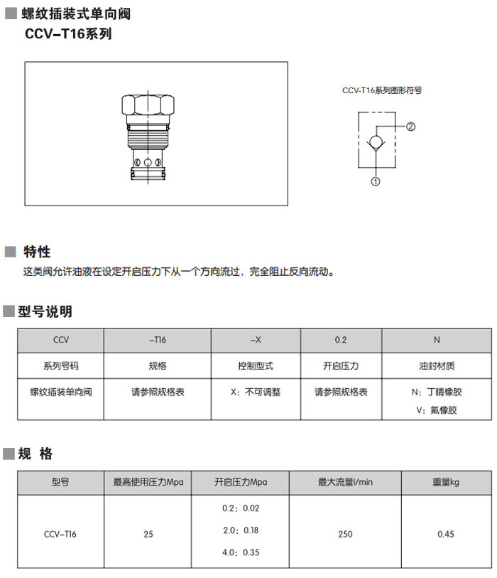 CCV-T16-X0.2N,CCV-T16-X2.0N,CCV-T16-X4.0N,CCV-T16-X0.2V,CCV-T16-X2.0V,CCV-T16-X4.0V,螺紋插裝式單向閥