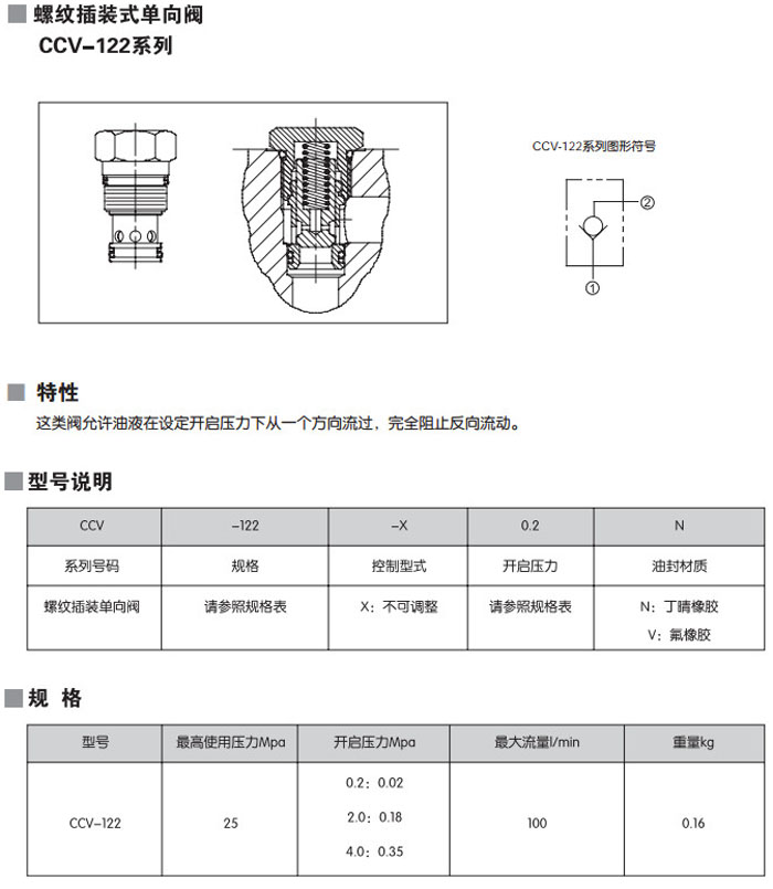CCV-122-X0.2N,CCV-122-X2.0N,CCV-122-X4.0N,CCV-122-X0.2V,CCV-122-X2.0V,CCV-122-X4.0V,螺紋插裝式單向閥 詳細(xì)信息 CCV-122-X0.2N,CCV-122-X2.0N,CCV-122-X4.0N,CCV-122-X0.2V,CCV-122-X2.0V,CCV-122-X4.0V,螺紋插裝式單向閥