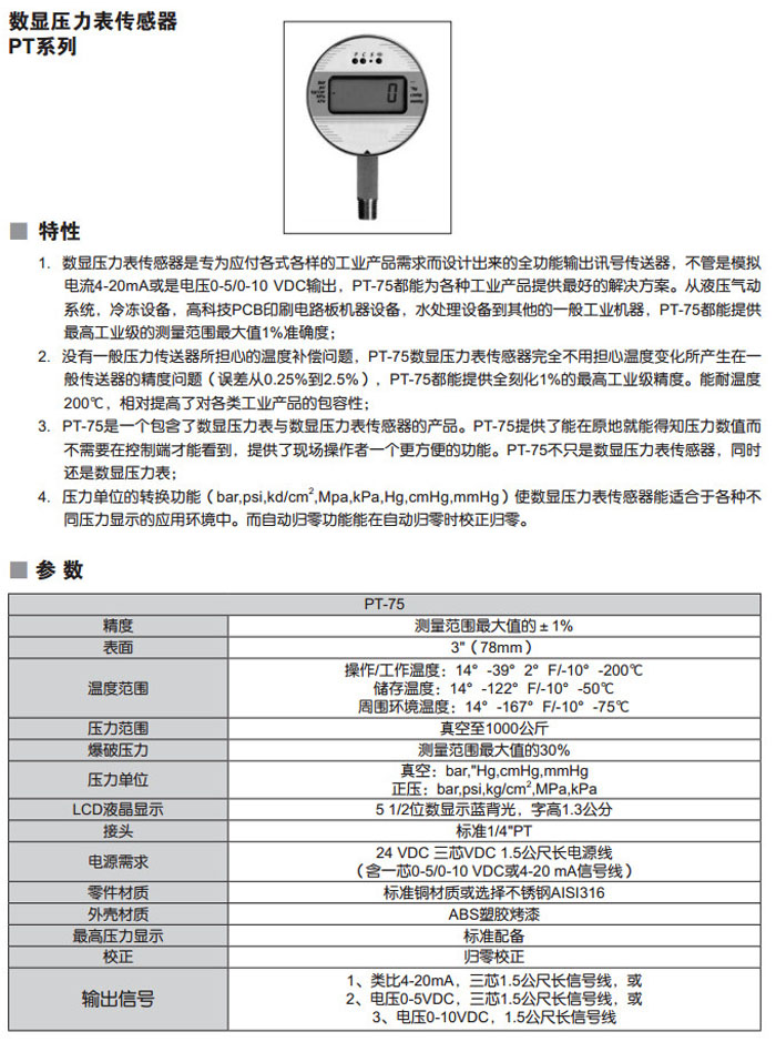 PT-75-A1,PT-75-B2,數(shù)顯壓力表傳感器