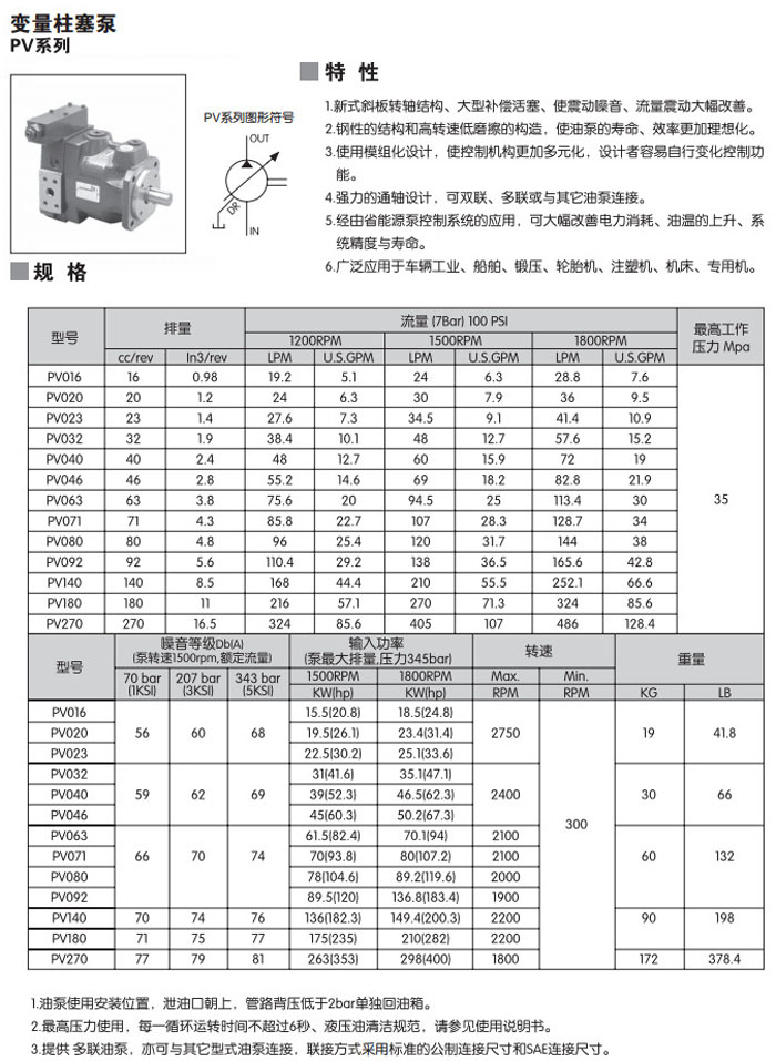 PV016,PV020,PV023,PV032,PV040,PV046,PV063,PV071,PV080,PV092,PV140,PV180,PV270,變量柱塞泵