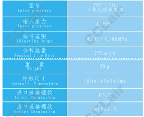 YQT-731L,二氧化碳減壓器,CCLair
