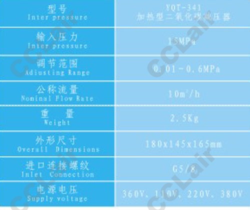 » YQT-341,加熱型二氧化碳減壓器,CCLair