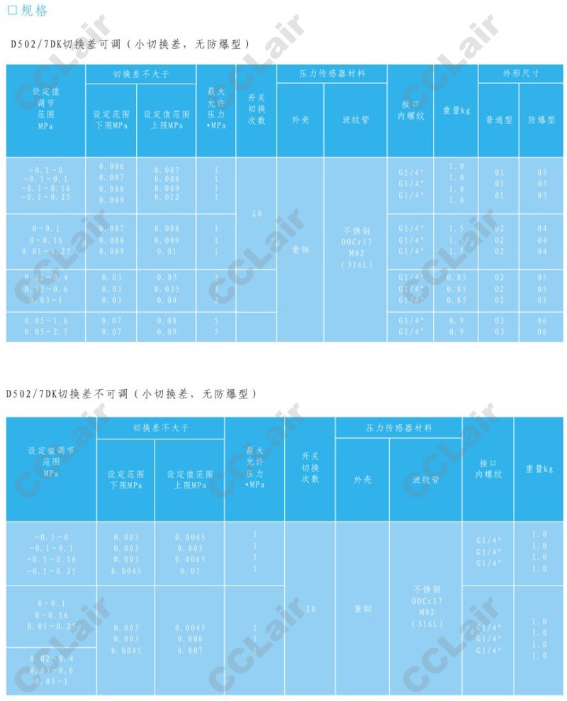» D520/7DD,壓力控制器,CCLair