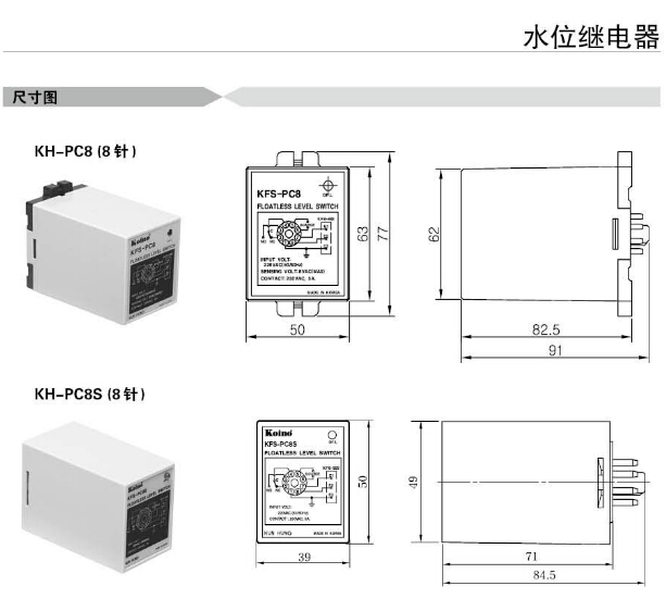 » KFS-PC8,KFS-PC8S,Koino水位繼電器
