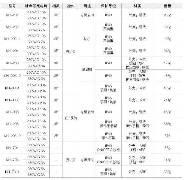 KH-201,KH-202,KH-204,KH-203-2,KH-3051,KH-3063,KH-306,KH-205,KH-701,H-703,H-7011,Koino動力啟動開關(guān)