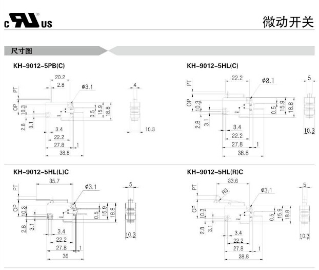 KH-9012-5,KH-9012,KH-9012-5PBC,KH-9012-5HLC,KH-9012-HLC,KH-9012-HRLC,KH-9012-HRMC,Koino微動(dòng)開(kāi)關(guān)