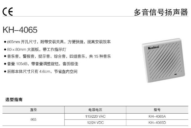 KH-4065A,KH-4065D,Koino 多音信號揚聲器