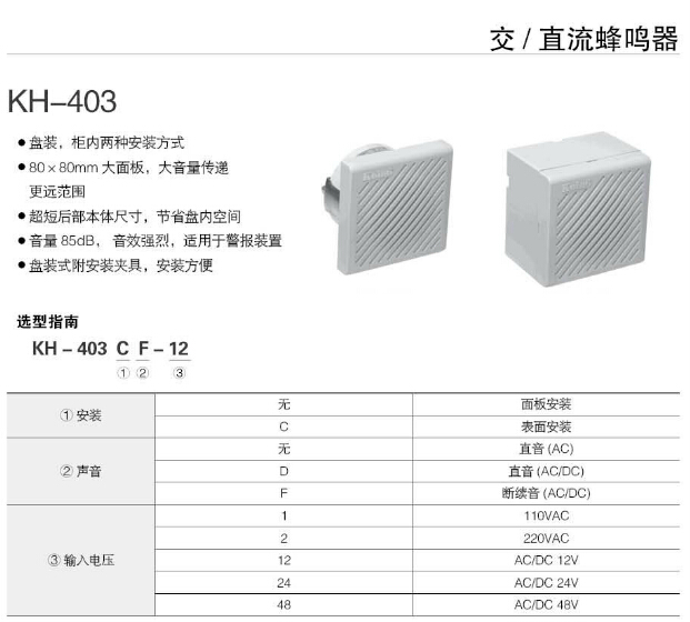 KH-403-1,KH-403C-1,KH-403D-12,KH-403CD-12,KH-403F-12,KH-403CF-12,KH-403CF-48,Koino交/直流蜂鳴器