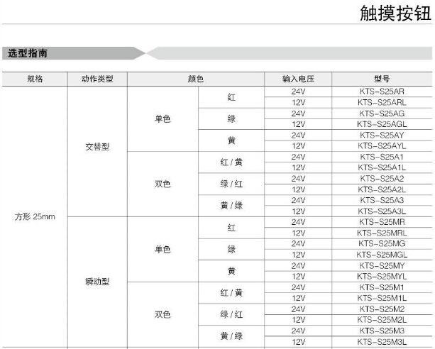 瀏覽次數(shù):623KTS-S25,KTS-S40,KTS-S25AR,KTS-S40AR,KTS-S40M3L,KTS-S25M3L,KTS-S25A2,KTS-S40A3L,Koino觸摸按鈕 |
