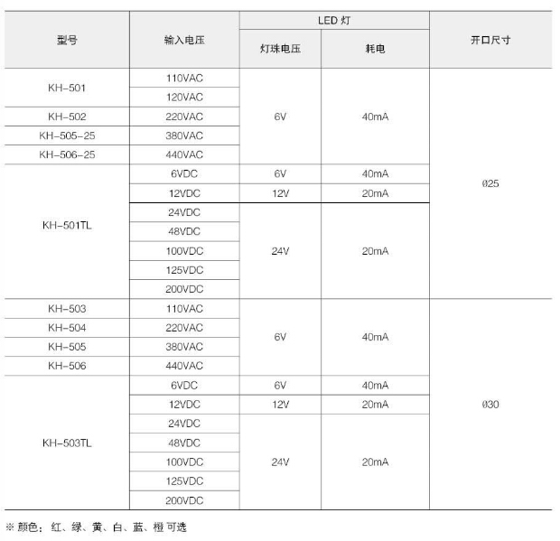 KH-501,KH-502,KH-505-25,KH-506-25,KH-501TL,KH-503,KH-504,KH-505,KH-506,KH-503TL,Koino LED指示燈