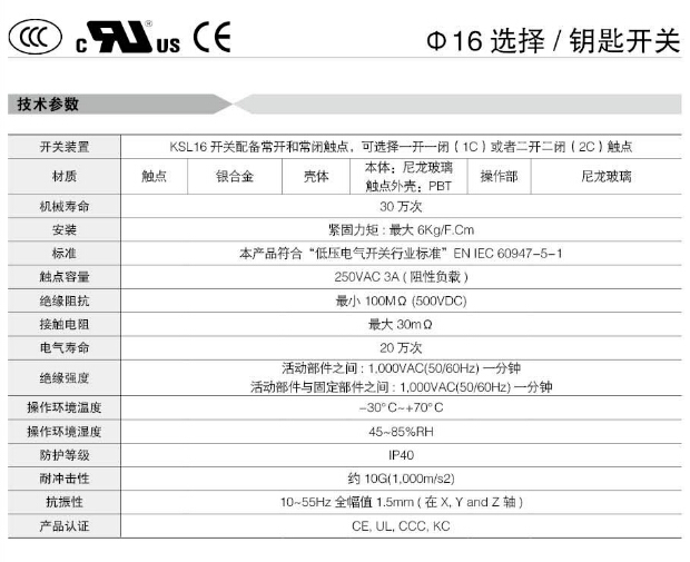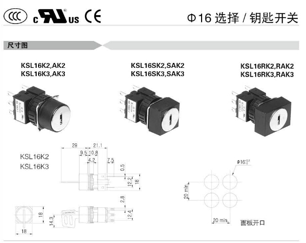詳細(xì)信息 KSL16S2,KSL16AS2,KSL16S3,KSL16AS3,KSL16SS2,KSL16SAS2,KSL16SS3,KSL16SAS3,KSL16RS2,KSL16RAS2,KoinoΦ16選擇開(kāi)關(guān)