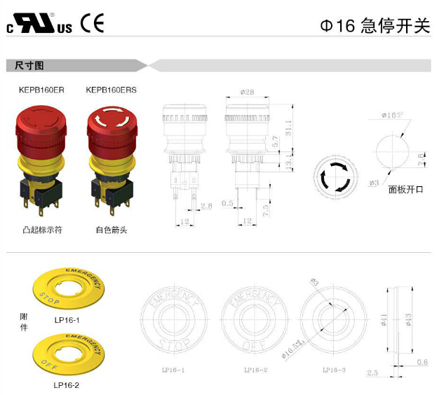 » KEPB160ER,KEPB160ERS,Koino Φ16急停開關