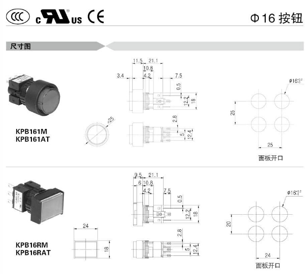 詳細(xì)信息 KPB16M,KPB16AT,KPB16SM,KPB16SAT,KPB160M,KPB160AT,KPB161M,KPB161AT,KPB16RM,KPB16RAT,KoinoΦ16按鈕