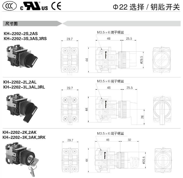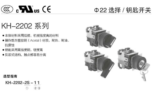 KH-2202-2S,KH-2202-2AS,KH-2202-2L,KH-2202-2AL,KH-2202-3S,KH-2202-3L,KH-2202-3RL,KoinoΦ22選擇開(kāi)關(guān)