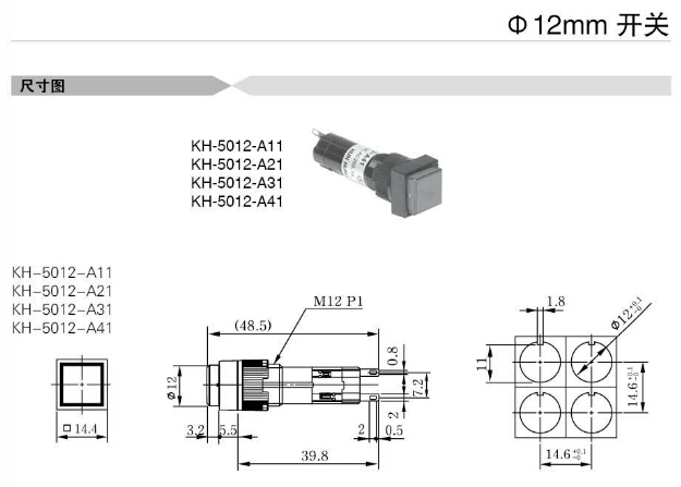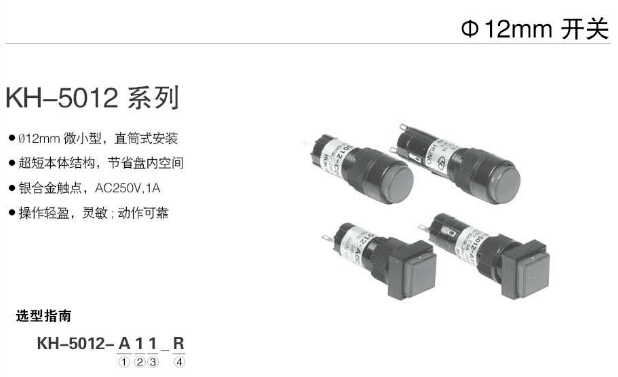 KH-5012-C00,KH-5012-C11,KH-5012-C21,KH-5012-A00,KH-5012-A11,KH-5012-A21,Koino Φ12mm開關(guān)