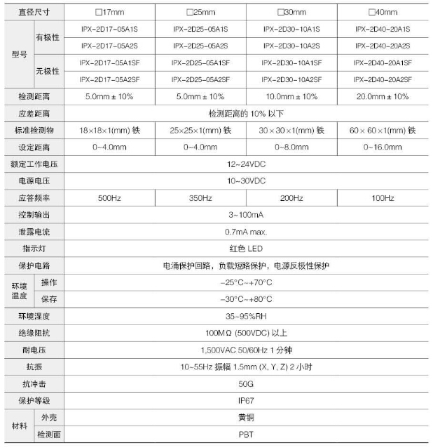 IPX-D17-05E1S,IPX-D25-05E1S,IPX-D30-10E1S,IPX-D40-20E1S,IPX-2D17-05A1S,Koino方形接近開關(guān)