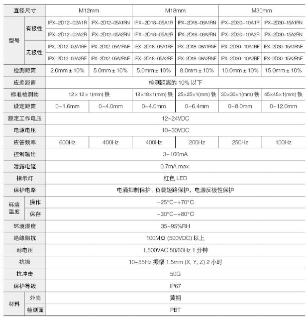 IPX-2D30-10A1R,IPX-A12-02A1R,IPX-A18-05A1R,IPX-A30-15A1RN,Koino接插型接近開關(guān)