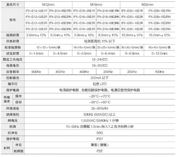 IPX-D12-02E2R,IPX-D12-05E2RN,IPX-D18-05E2R,IPX-D18-08E2RN,IPX-D30-10E2R,IPX-D30-15E2RN,