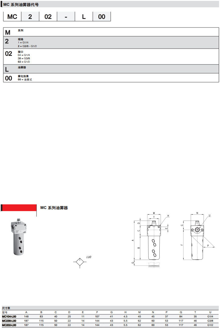 MC104-L00,MC138-L00,MC102-L00,MC204-L00,MC238-L00,camozzi油霧器
