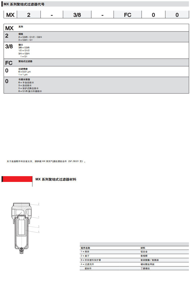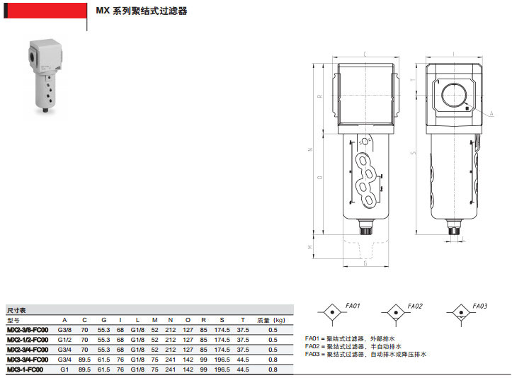 MX2-3/8-FC00,MX2-1/2-FC03,MX3-1/2-FC05,MX3-3/8camozzi聚結(jié)式過(guò)濾器