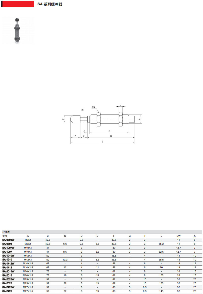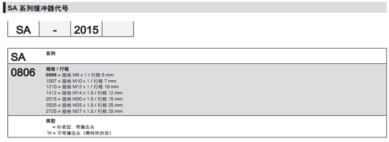 SA-0806,SA-1007,SA-1210,SA-1412,SA-2015W,SA-2525W,camozzi緩沖器