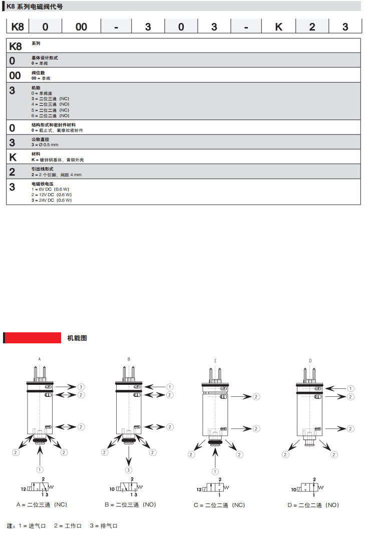 詳細信息 K8000-003-K21,K8000-303-K22,K8000-403-K23,K8000-503-K21,camozzi直動式微型電磁閥