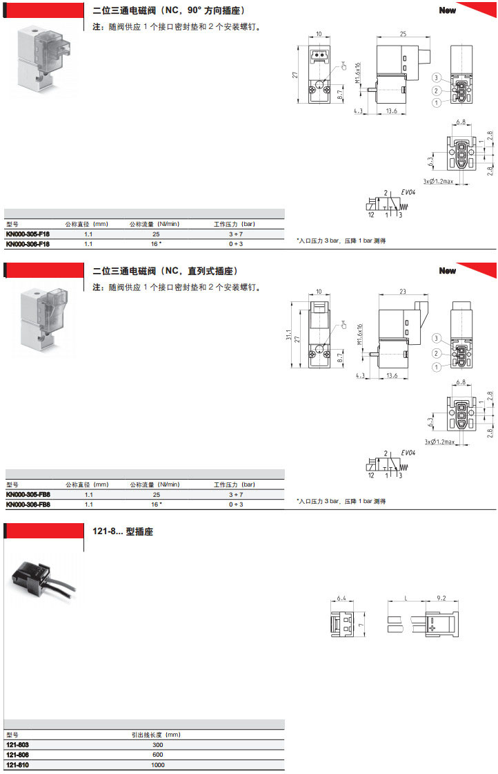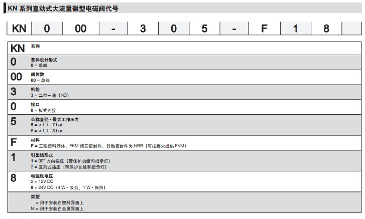 KN000-305-F12,KN000-306-F18,KN000-305-F22Mcamozzi直動(dòng)式大流量微型電磁閥