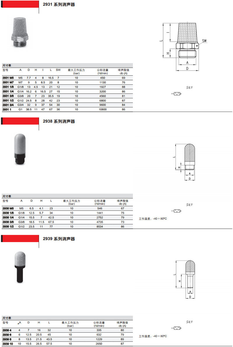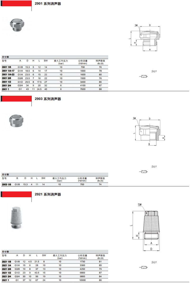2901-1/8,2903-1/8,2921-1/4,2931-M5,2938-1/2,2939-4camozzi消音器