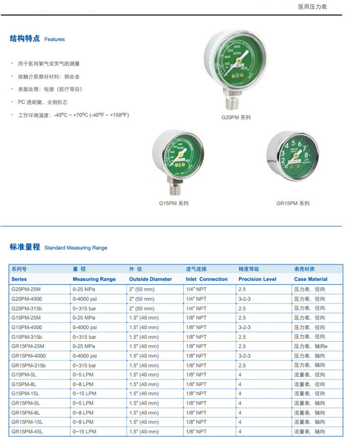 G20PM-25M,G15PM-25M,GR15PM-25M,G15PM-5L,GR15PM-45L,G15PM-315b,GR15PM-15L,醫(yī)用壓力表