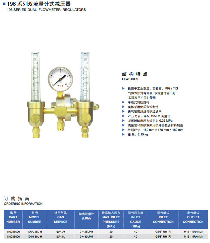 196A-25L-H,196N-30L-H,雙流量計(jì)式減壓器