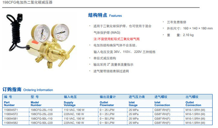 198CFG-25L-110,198CFG-25L-220,198CFG-50L-110,198CFG-50L-220,電加熱二氧化碳減壓器 詳細(xì)信息 198CFG-25L-110,198CFG-25L-220,198CFG-50L-110,198CFG-50L-220,電加熱二氧化碳減壓器
