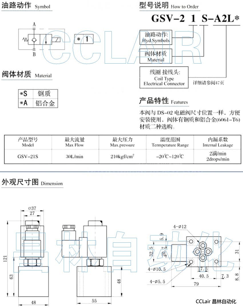 GSV-21S-A2L2,GSV-21S-A2L5,GSV-21A-A2L2,GSV-21A-A2L5,板式電磁方向閥