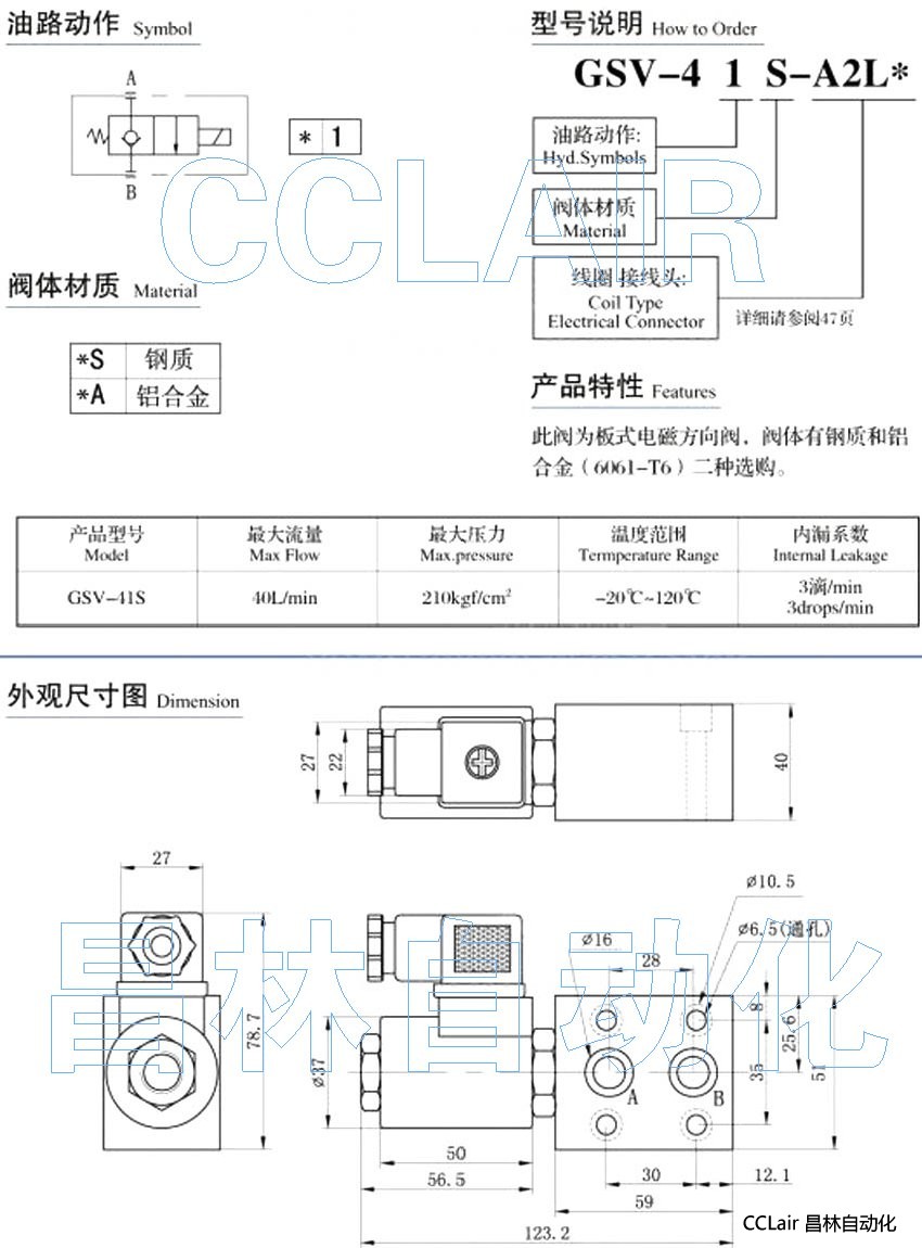 GSV-41S-A2L2,GSV-41S-A2L5,GSV-41A-A2L2,GSV-41A-A2L5,板式電磁方向閥