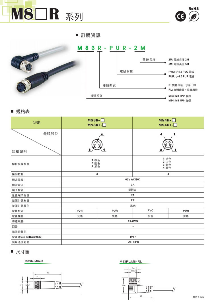 M83R-PUR,M83R-PVC,M84R-PUR,M84R-PVC,M83RL-PUR,M83RL-PVC,M84RL-PUR,M84RL-PVC,KIDA導線接頭 |