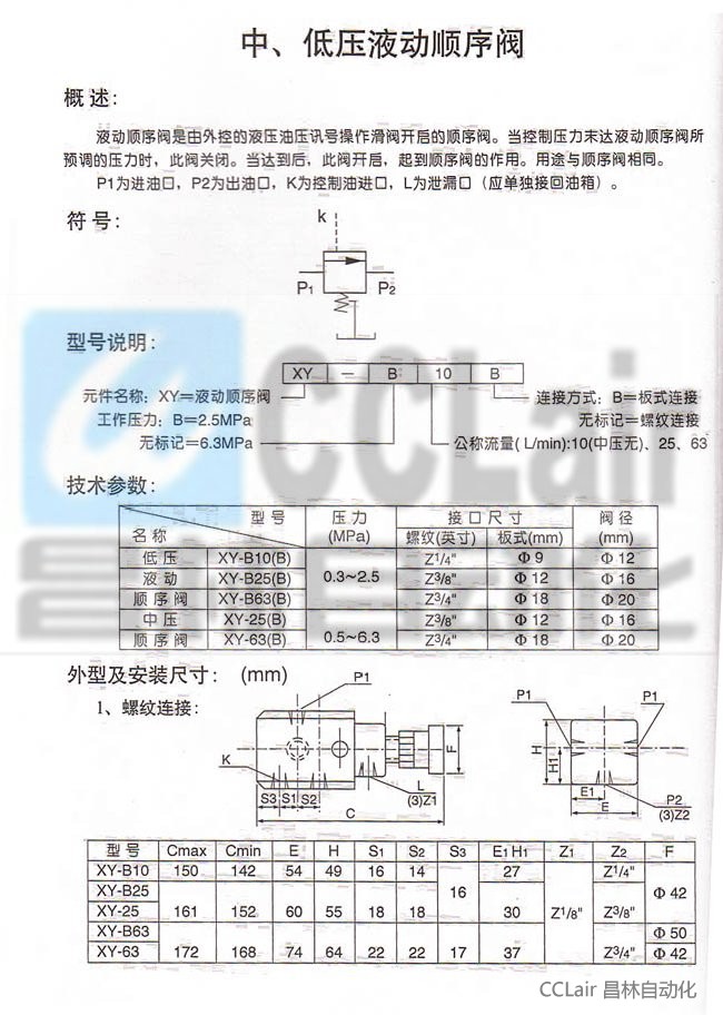 XY-B10,XY-B10B,XY-B25,XY-B25B,XY-B63,XY-B63B,XY-25,XY-25B,XY-63,XY-63B,液動順序閥
