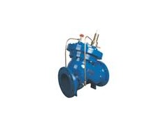 水力控制閥就是水壓控制的閥門,是由一個主閥及其附設(shè)的導(dǎo)管,導(dǎo)閥,針閥,球閥及壓力等組成。根據(jù)使用目的,功能及場所不同演變成水力控制閥,遙控浮球閥,減壓閥,流量控制閥,緩閉式止回閥,泄壓閥,水力電動控制閥等。水力控制閥分為隔膜型或活塞型兩類,工作原理相同,都是以上游壓力差△P為動力,使隔膜(活塞)液壓式差動操作,完全由水力自動調(diào)節(jié),從而使主閥閥盤完全開啟或關(guān)閉處于調(diào)節(jié)狀態(tài),當進入隔膜(活塞)上腔控制室內(nèi)壓力水被排到大氣和下游低區(qū)域時,作用在閥盤底部或隔膜下方的壓力值大于上方壓力值時,所以將閥盤推動完全開啟開啟位置,當進入隔膜(活塞)上腔控制室內(nèi)壓力水不能排到大氣或下游低區(qū)域時,作用在隔膜(活塞)上方壓力值大于下方壓力值,所以就會把主閥盤壓到完全關(guān)閉的位置,當隔膜(活塞)上腔控制室壓力值處于入口壓力和出口壓力中間時,主閥盤就處于調(diào)節(jié)狀態(tài),其調(diào)節(jié)位置取決與導(dǎo)管中的針閥和可調(diào)導(dǎo)閥聯(lián)合控制作用??烧{(diào)導(dǎo)閥可以通過下游出口壓力并隨它的變化開大或關(guān)小其自身的小閥口,從而改變隔膜(活塞)上腔室的壓力值,控制主閥閥盤調(diào)節(jié)位置。
