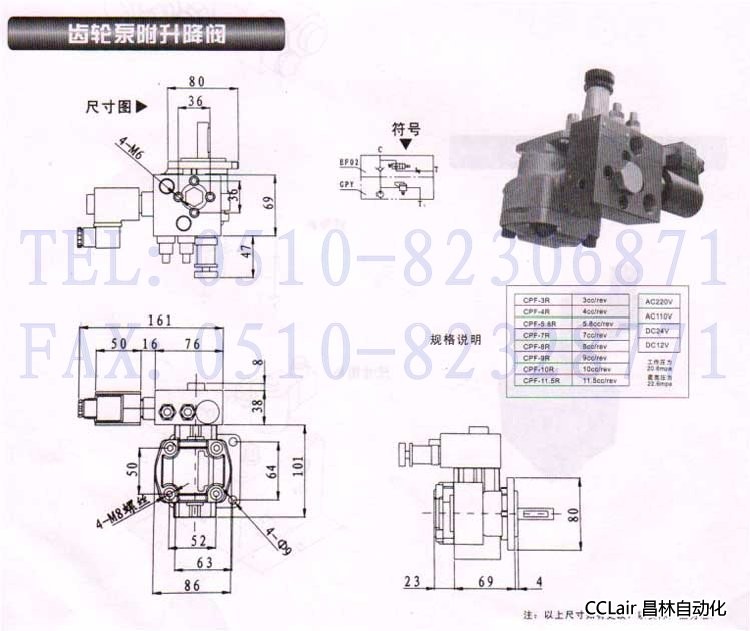 詳細(xì)信息 CPF-3R,CPF-4R,CPF-5.5R,CPF-7R,CPF-8R,CPF-9R,CPF-10R,CPF-11.5R,齒輪泵附升降閥