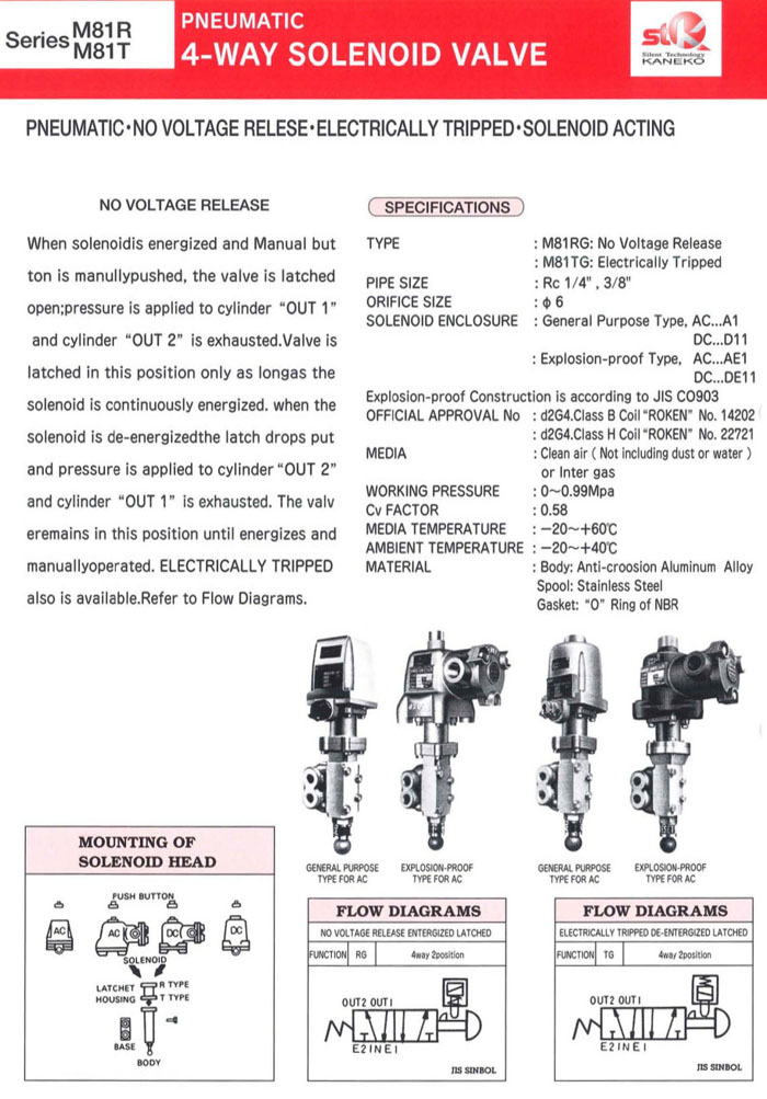 M81RG-8-A1,M81RG-10-A1,M81TG-8-A1,M81TG-10-A1,M81RG-8-D11,KANEKO氣動4路電磁閥