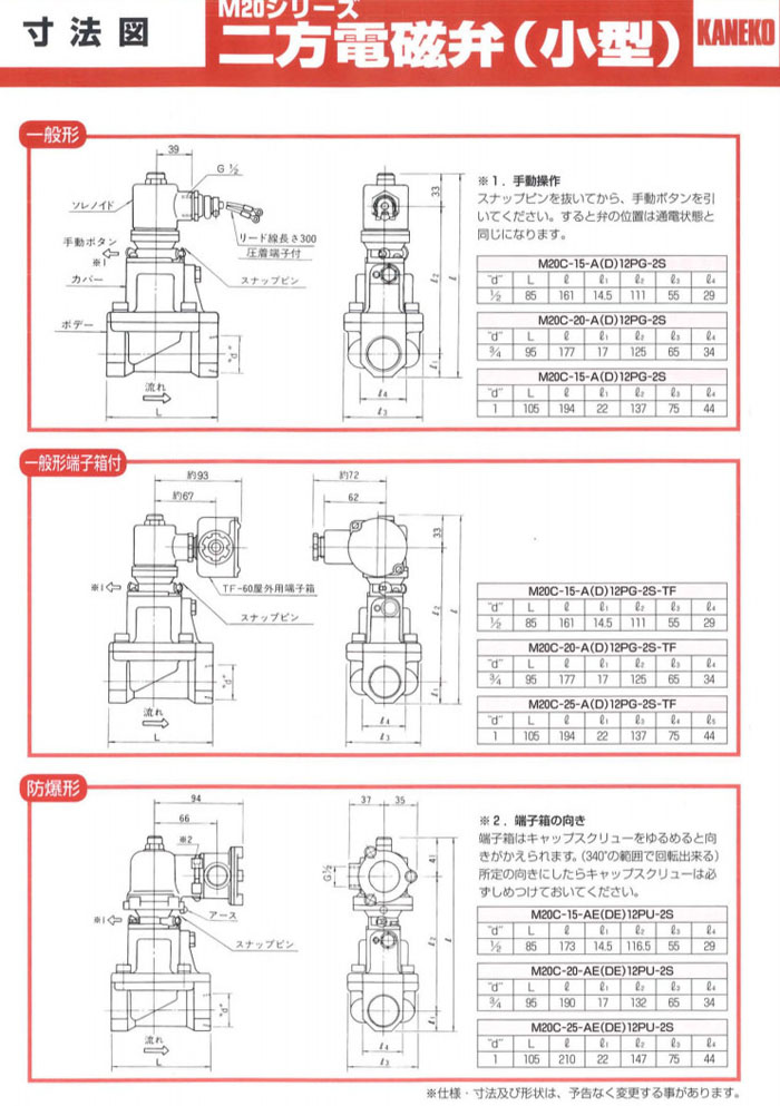 M20D-20-A12PG-2F,M20D-20-D12PG-2F,M20D-25-A12PG-2S,M20D-25-D12PG-2S,M20D-25-A12PG-2F,