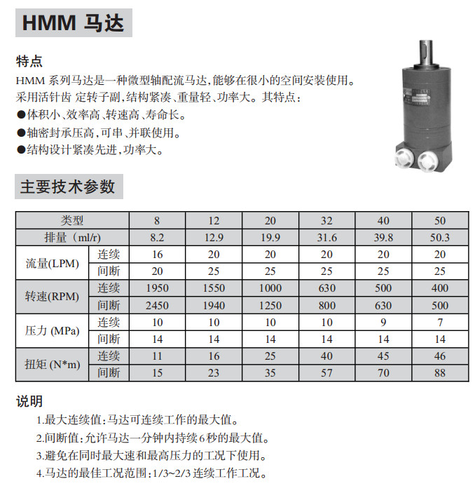 詳細(xì)信息 HMM-8,HMM-12,HMM-20,HMM-32,HMM-40,HMM-50,馬達(dá)