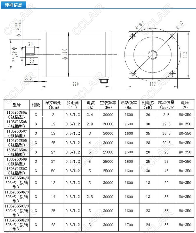 詳細(xì)信息 110BYG350A,110BYG350B,110BYG350C,110BYG350D,130BYG350A,130BYG350B,130BYG350C,步進(jìn)電機(jī)