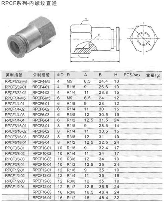 RPCF5/32-M5,RPCF1/4-01,RPCF3/8-02,RPCF1/2-01,RPCF4-M5,RPCF6-03,RPCF8-01,內(nèi)螺紋直通
