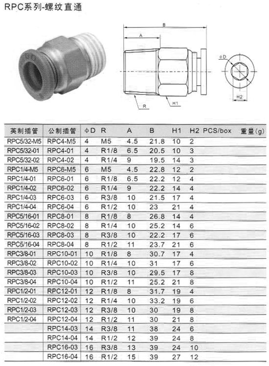 RPC5/32-M5,RPC1/4-01,RPC3/8-02,RPC1/2-01,RPC4-M5,RPC6-03,RPC8-01,螺紋直通